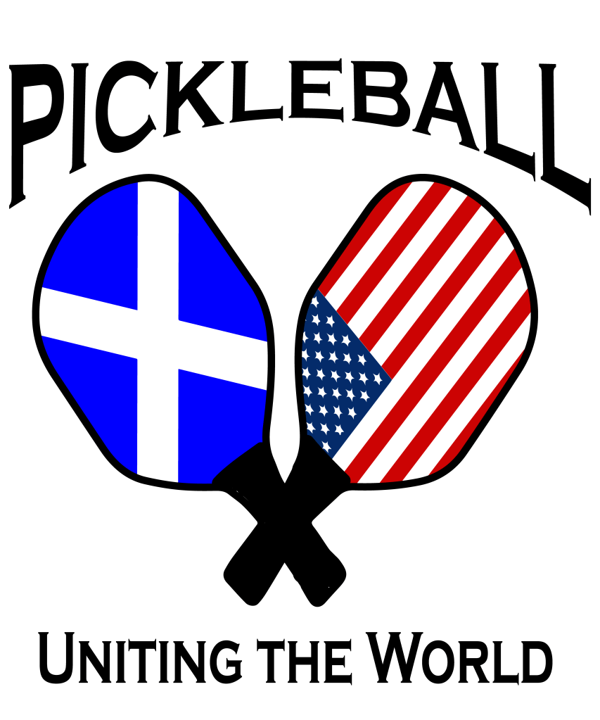 Just a little history on how the phrase came into being. I was preparing to travel to Europe to play in two tournaments. The first in Kent, England, and then on to Helsinki (Espoo), Finland for a second one a week later. In England I was partnering a Scottish player, and in Finland my partner was Spanish. I wanted to give each of them a gift, celebrating our international partnerships. My first idea, two crossed paddles with the USA flag and my partner’s country flag came to light, and I decided to make tee shirts for us to wear when we played, and later to remember our experiences together.